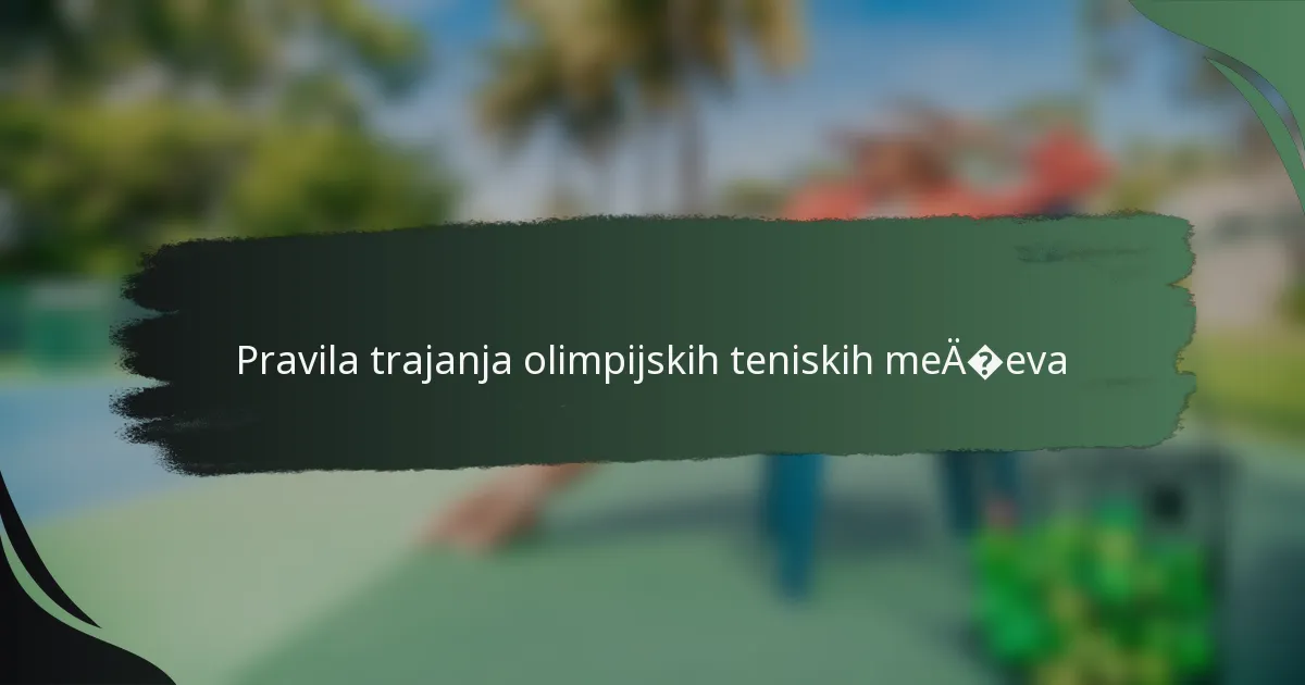 Trajanje olimpijskog teniskog meča može biti pod utjecajem nekoliko ključnih faktora, uključujući razinu vještine igrača, pravila formata meča i uvjete okoliša. Razumijevanje ovih elemenata može pomoći u anticipaciji koliko dugo bi meč mogao trajati i strategijama koje igrači mogu primijeniti.