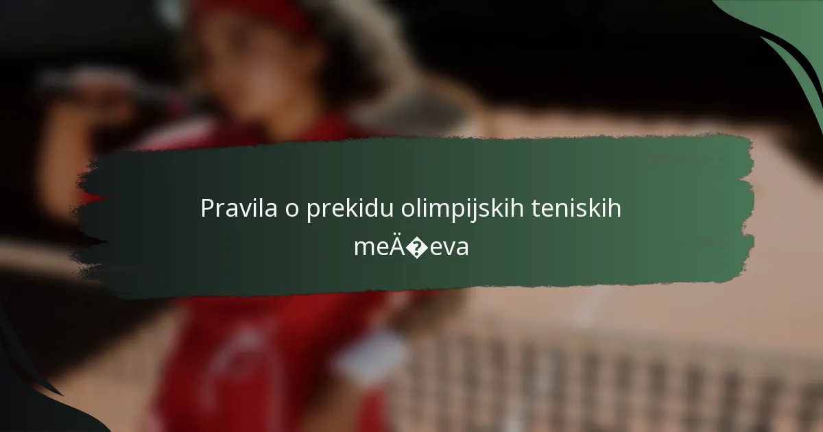 Pravila o prekidima teniskih mečeva na Olimpijadi definiraju uvjete pod kojima se igra može pauzirati, osiguravajući pravednost i integritet natjecanja. Ova pravila razlikuju se od onih na Grand Slam i ATP/WTA turnirima, nudeći veću fleksibilnost i obraćajući pažnju na jedinstvene čimbenike poput vremena i angažmana publike. Prekidi mogu nastati zbog različitih faktora, utječući na dinamiku meča i iskustva igrača i gledatelja.
