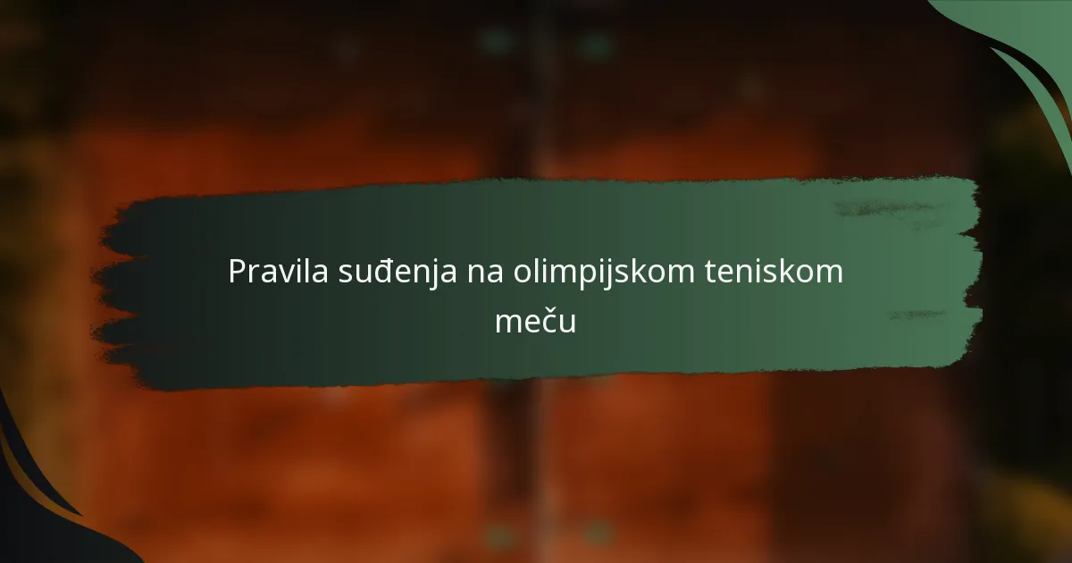 Pravila suđenja za olimpijske teniske mečeve osiguravaju fer play i pridržavanje pravila sporta. Ova pravila definiraju uloge službenika, ključne protokole meča i postupke za rješavanje sporova, a sve to značajno utječe na ishode mečeva.
