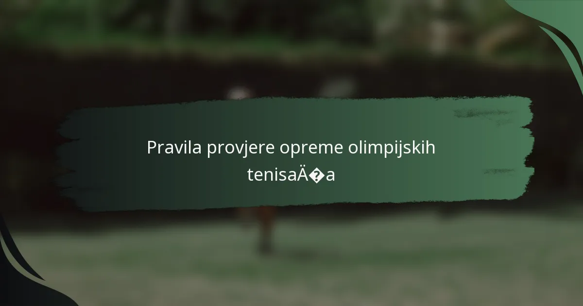 Pravila provjere opreme olimpijskih tenisača osiguravaju da sva oprema koju koriste sportaši udovoljava utvrđenim standardima. Ove regulative su ključne za održavanje poštene konkurencije i sigurnosti sportaša tijekom Igara.