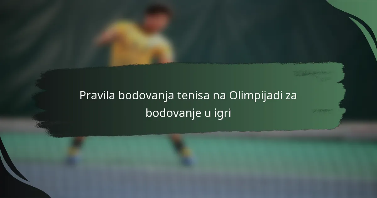 Scenariji bodovanja u olimpijskom tenisu ilustriraju se kroz strukturirani sustav koji uključuje poene, igre, setove i mečeve. Razumijevanje ovih scenarija ključno je za praćenje napredovanja meča i različitih ishoda koji se mogu pojaviti tijekom igre.