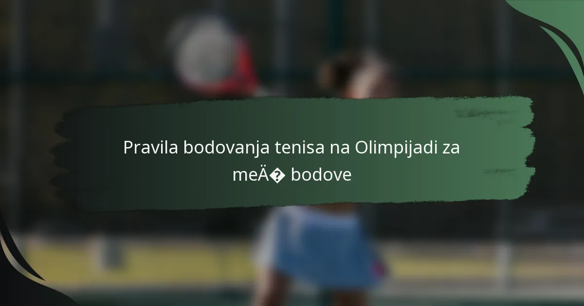 Bodovanje u olimpijskom tenisu ima jedinstvena pravila koja se razlikuju od ATP i WTA formata, kao i Grand Slam turnira. Razumijevanje ovih razlika može poboljšati cijenjenje igre i njenih različitih natjecateljskih okruženja.