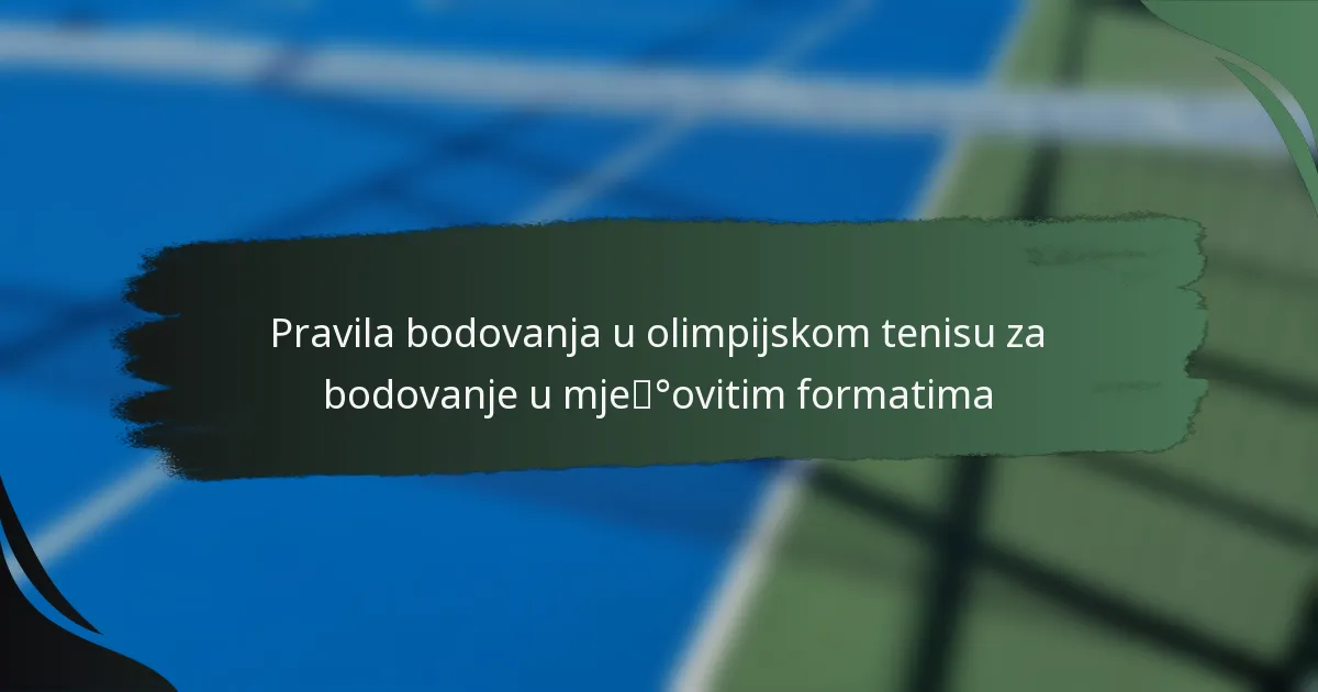 Pravila bodovanja u olimpijskom tenisu za mješovite formate, posebno u mješovitim parovima, uvode jedinstvenu kombinaciju tradicionalnog teniskog bodovanja s prilagodbama prikladnim za olimpijski kontekst. U ovom formatu, timovi se sastoje od jednog muškarca i jedne žene, a sustav bodovanja uključuje specifične propise za bodove, igre i setove koji poboljšavaju natjecateljsko iskustvo. Igrači moraju navigirati jedinstvenim nijansama bodovanja i dinamikom timskog rada, što može utjecati na trajanje meča i ishode.