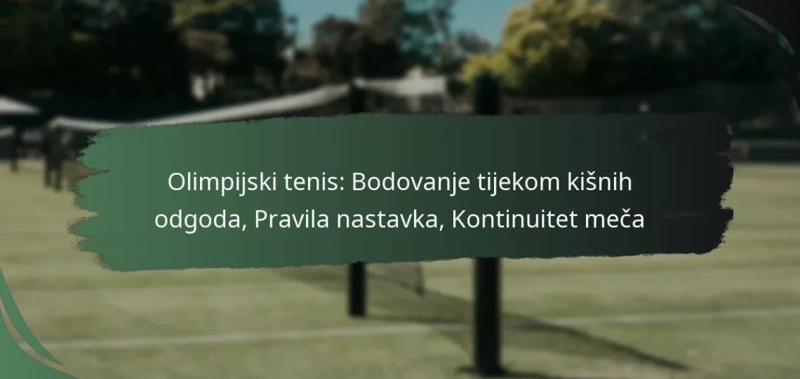 Kontinuitet meča u olimpijskom tenisu očuva se kroz utvrđene postupke koji se bave bodovanjem tijekom odgoda zbog kiše, pravilima nastavka i ulogama sudaca. Ovi protokoli osiguravaju pravednost i jasnu komunikaciju za igrače i gledatelje, omogućujući mečevima da se glatko nastave nakon prekida.